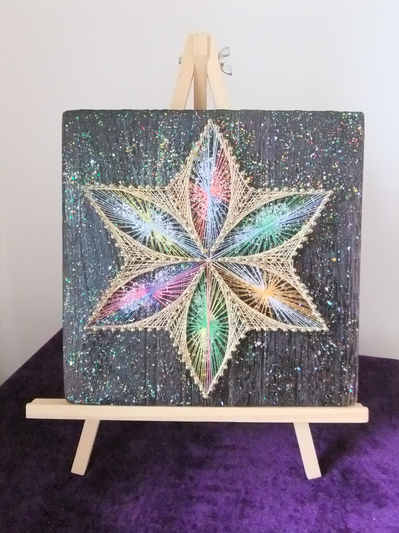 ※板:20×20cm 焼き杉板 (ニス・ラメ加工)